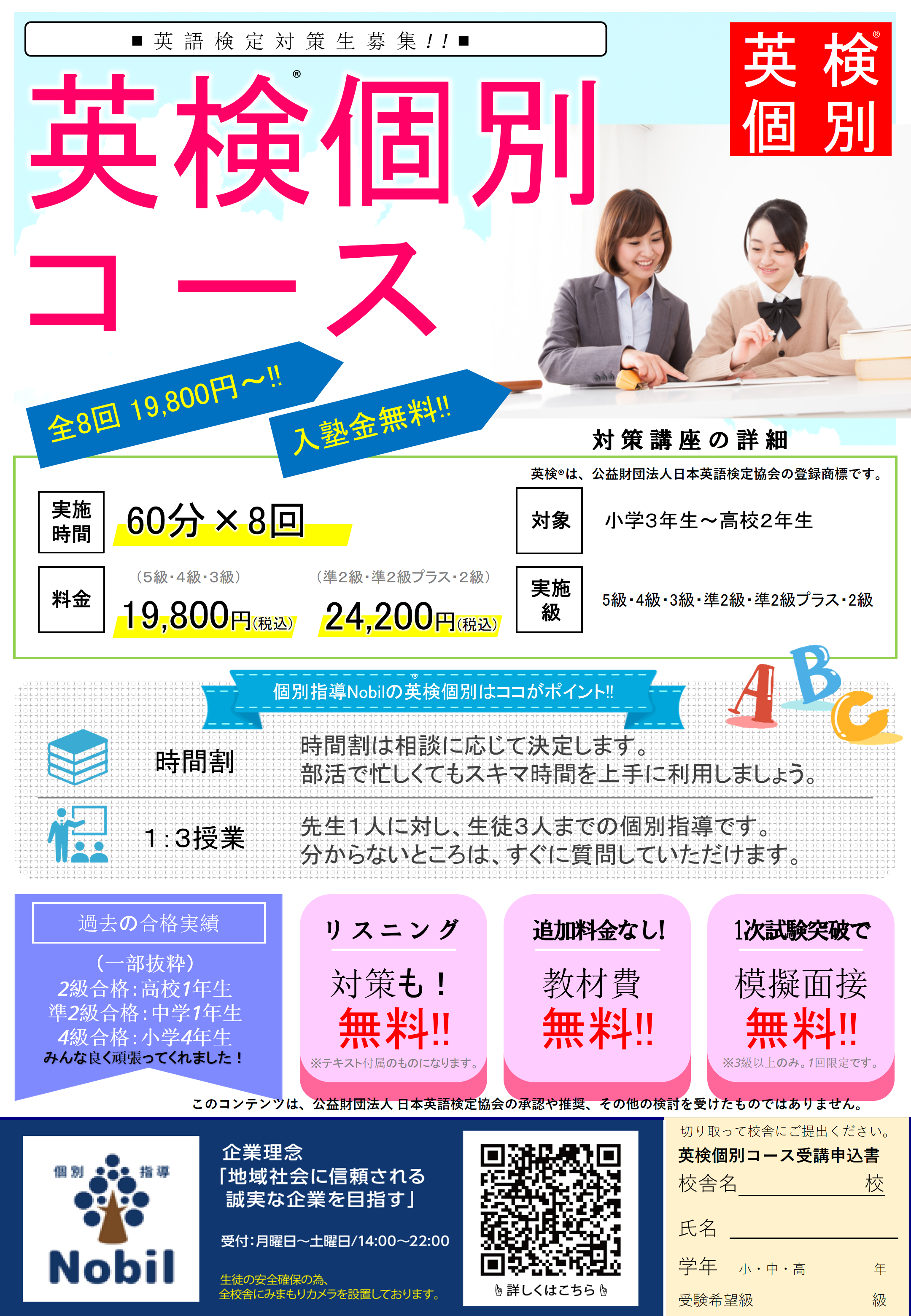 | 教室名 | 個別指導Nobil 竜田川校 |